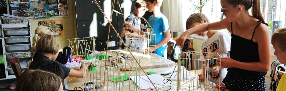 Der er fokus på børnenes fælles deltagelse i workshoppens kreative processer og på samarbejdet med kunstnere i nye omgivelser uden for skolens sædvanlige rammer.