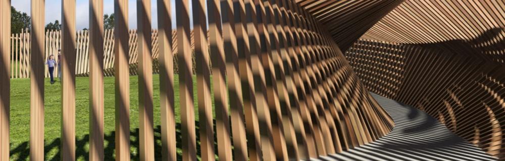 Thilo Frank byder ind med en stor, interaktiv træskulptur, der gengiver sine beskueres lyde, når de går igennem den.