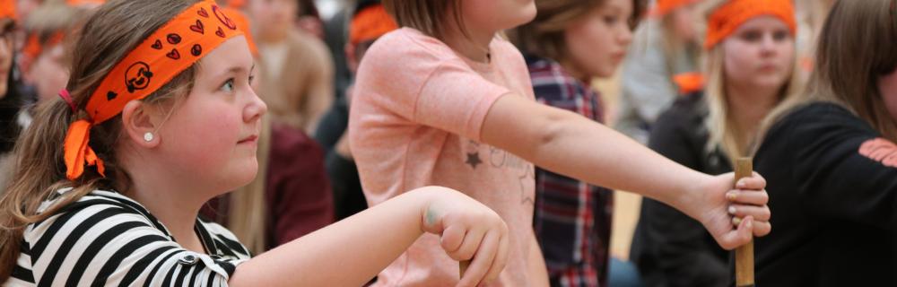 En energifyldt dag med rytmisk og bevægelsesmæssig udfoldelse og samvær. En anderledes dag med fokus på tidens rytmer, dans og bevægelse til musik. Et ”råbekomsammen ”, hvor humor og oplevelsen af at være på er sat i fokus. Det hele afsluttes med en koncert hvor alle kan vise hvad de kan og har lært.