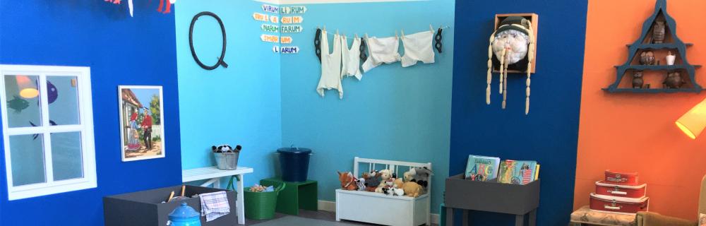 Vi indbyder til dialog, interaktion og leg med børn såvel som voksne. I rummet tilskyndes legen i læringen, og der lægges op til lege med nysgerrighed og undren i centrum; inspiration til arbejdet med bogstaver og ord i skolen, såvel som børnenes egne videre lege.